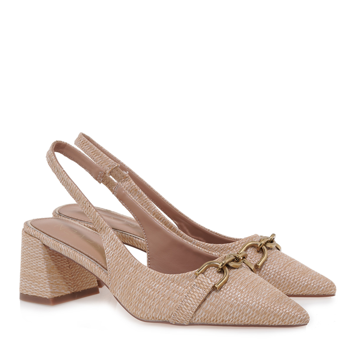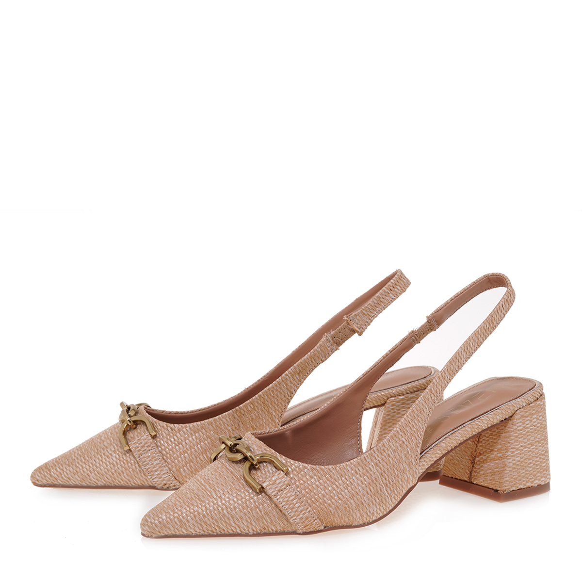 • Γυναικείες γόβες από δέρμα συνθετικό και ψάθα