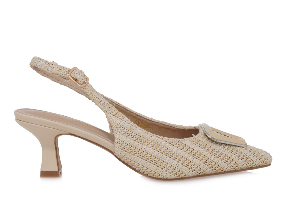 - Γυναικείες γόβες από δέρμα συνθετικό και ψάθα
